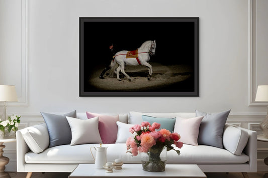 The series reveals the grace of classical dressage at its highest level—a poetic on the long rein where strength meets softness, and discipline becomes dance. These prints are not merely photographs; they are visual echoes of a living art form, offered here to honor the timeless connection between human and horse.