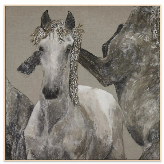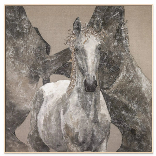 In the Equus Series, I delve into the dynamic interplay between realism and abstraction, captivated by the journey from pure form to expressive freedom. Each piece is a dance of textures, layers, and evolving shapes—a visual exploration where the process remains visible, inviting the viewer to witness the transformation.